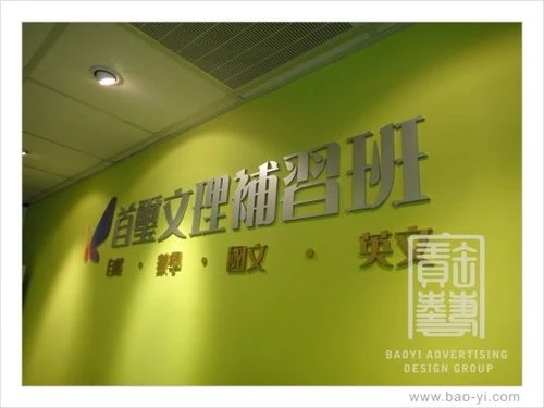 寶藝廣告-企業形象牆立體雷射烤漆水晶字招牌設計-首璽補習班