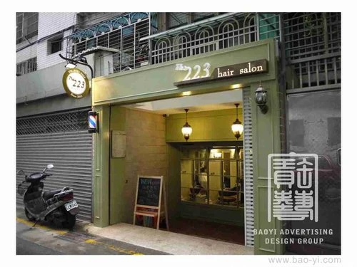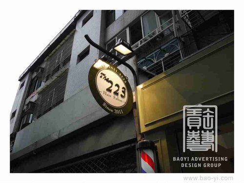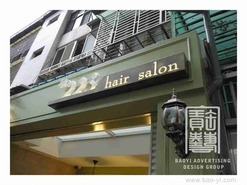 招牌-店面金屬造型立體站立式雷射形象招牌製作-the223 hair salon,位於中山北路二段50巷之11號,設計師運用金屬鍍鋅箱體雷射,並且三層專業烤漆,背套立體雷射水晶字使招牌立體感,而不銹鋼雙面腐蝕造型側招在鹵素投光燈探照之下,營造出質感且復古的風格,呈現專業的形象效果,很感謝the223 hair salon的沈先生,對本公司的支持與任信