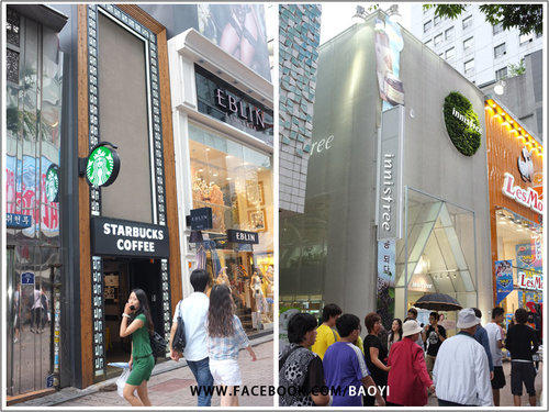 韓國因本身地理位置的關係,使其較無地震、颱風等問題,反應在建築設計上就是高聳的大樓,在首爾到處可見。來到韓國首爾最熱鬧的明洞大街,首先映入眼簾的便是一棟棟充滿特色的商店,不僅僅是告知店址,更多的是品牌形象的定位。